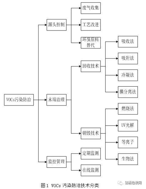 目前,廢氣治理行業(yè)公認(rèn)的處理技術(shù)可分為回收技術(shù)和銷毀技術(shù),整體的VOCs污染防治技術(shù)具體細(xì)分見圖1,