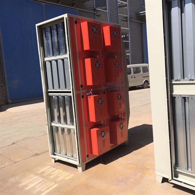 等離子凈化器設備是由電源和齒板放電裝置,使其產生高強度、高濃度、高電能的活性自由基,在毫秒級的時間內,瞬間對有害廢氣分子進行氧化還原反應,將廢氣中的大部分污染物降解成二氧化碳和水及易處理的物質 。