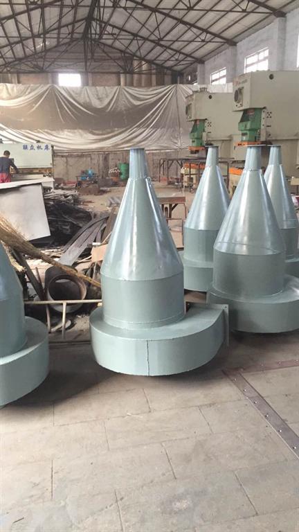 旋風(fēng)除塵器工作運(yùn)行一段時(shí)間后往往發(fā)現(xiàn)器壁有磨損現(xiàn)象。首先磨損的地方一般是直接對著入口外把氣流由直線運(yùn)動(dòng)導(dǎo)為旋轉(zhuǎn)運(yùn)動(dòng)的地方和錐體靠近排塵孔的部分。磨損的嚴(yán)重程度和含塵氣流參數(shù)以及除塵器結(jié)構(gòu)有關(guān)。